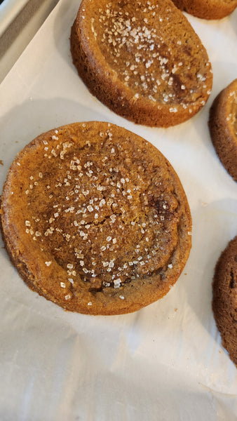 These classic gingerbread cookies are made with a rich molasses batter and spiced with warm ginger and cloves. Each bite is a comforting reminder of the holiday season. The cookies are topped with a sprinkle of coarse sugar for a touch of sweetness and a satisfying crunch. Limited Edition. After that they go into the recipe vault for another year.